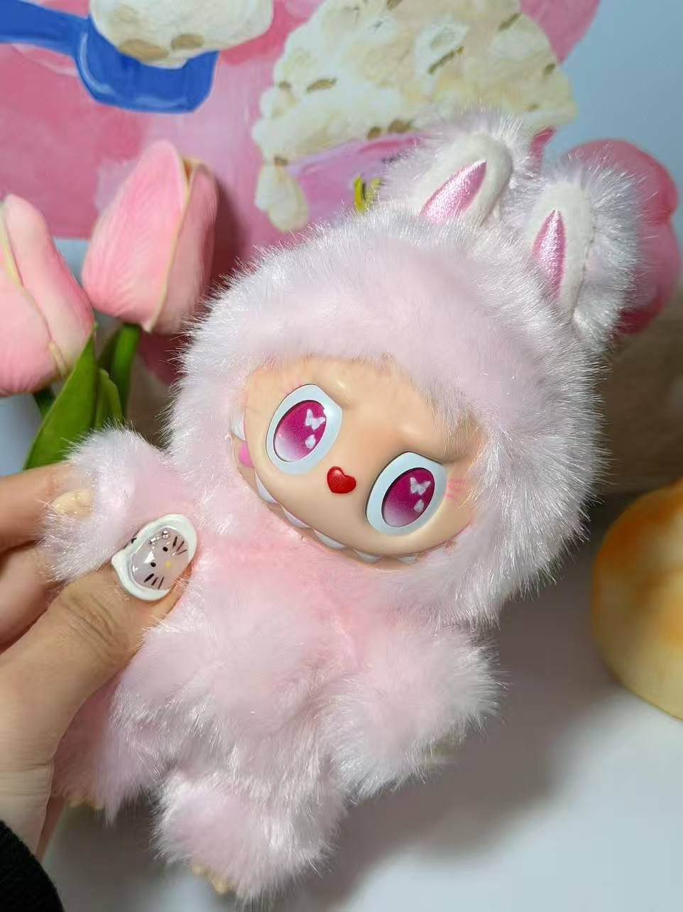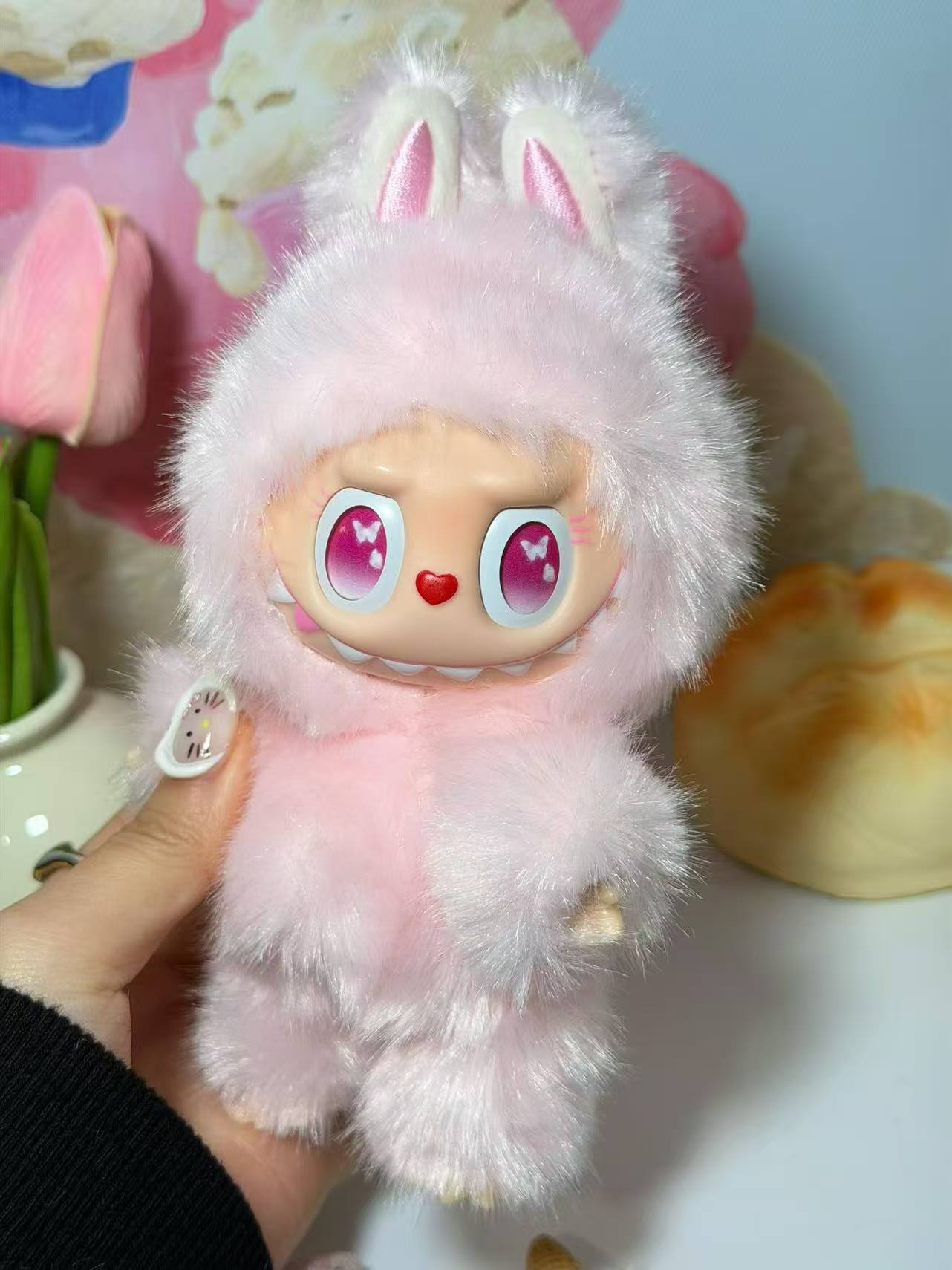 Please note: This product is made from an authentic LABUBU and entirely handcrafted, with a current customization period of ⚠️5-9 days⚠️. Every part of the figure, including the hands, feet, and ears, is meticulously crafted by hand. The limbs and ears are flexible, allowing for adjustable poses. As a handmade item, slight imperfections are inevitable, but we ensure that every product is created with care and full of warmth.